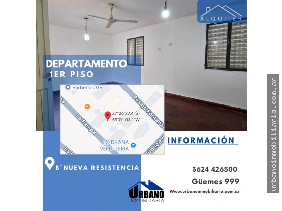 🏘 ALQUILER | DEPARTAMENTO 1ER PISO 📍B°NUEVA RESISTENCIA